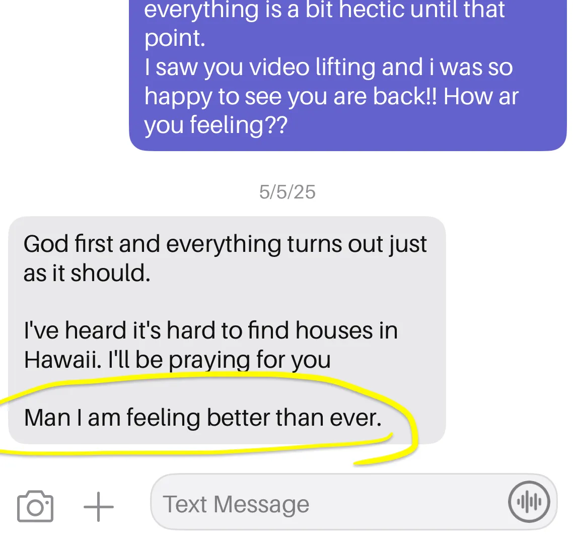 I’ll be honest — I didn’t always live like this. I lost over 50 pounds twice in my life, not because I had it figured out, but because I kept losing myself. I was addicted to weed, alcohol, food, porn, and anything that helped me escape responsibility and discomfort. I looked fine on the outside, but inside I was tired, foggy, disconnected, and ashamed of what I saw in the mirror. Everything changed when God stepped in. Through daily devotionals, prayer, and consistent practice, He showed me that my body isn’t something to ignore or fight, it’s something to steward. As my spiritual life came back into order, my habits followed. My energy returned. My focus sharpened. I feel younger and more athletic now than I did 15 years ago. I have no pain in my body, and I’m finally comfortable in my own skin again. That shift changed my identity and how I show up for my family, my business, and my community. At some point, I realized I couldn’t keep this to myself. God created men to lead their households, and with that comes accountability. When men fall, families suffer! and Satan knows that if he weakens the men, everything else breaks down. My mission is to build men back up, to help them regain strength, discipline, and order so they can lead well, protect their families, and be the example their children need. I live with a 10–20 year vision now, strong, present, and able to play with my future grandkids without pain or regret. This isn’t about fitness.